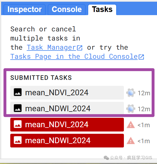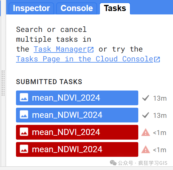 随后,执行这2个任务,即可开始将结果文件导出至Google Drive,如下图所示。