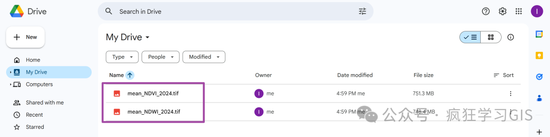 导出完毕后,就可以在Google Drive的对应路径下,看到我们刚刚导出到这里的结果图像文件,如下图所示。