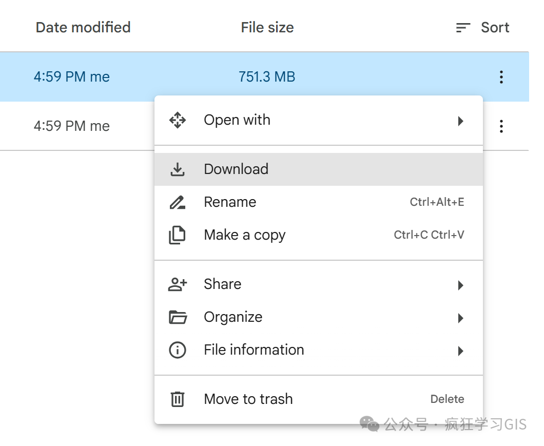 随后,在文件上右键,选择“Download”即可开始下载文件,如下图所示。