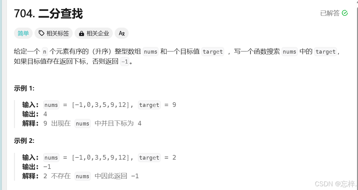 老规矩,小编先给出本题目的来源:704. 二分查找 - 力扣(LeetCode)