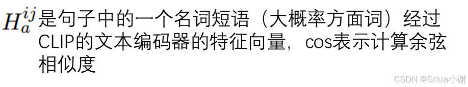 是句子经过CLIP的文本编码器的特征向量,cos表示计算余弦相似度。V就是对应的图像部分的CLIP编码表示。