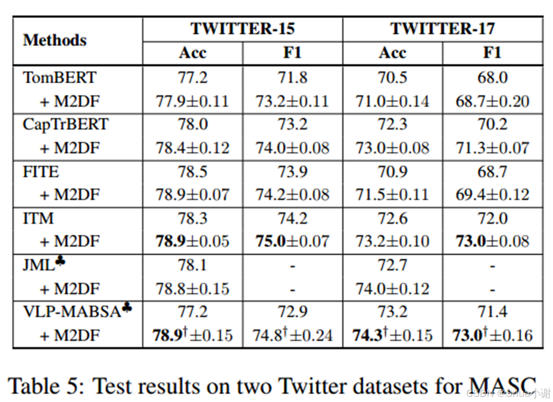 MASC(句子+图片+方面——识别方面情感)任务的实验结果