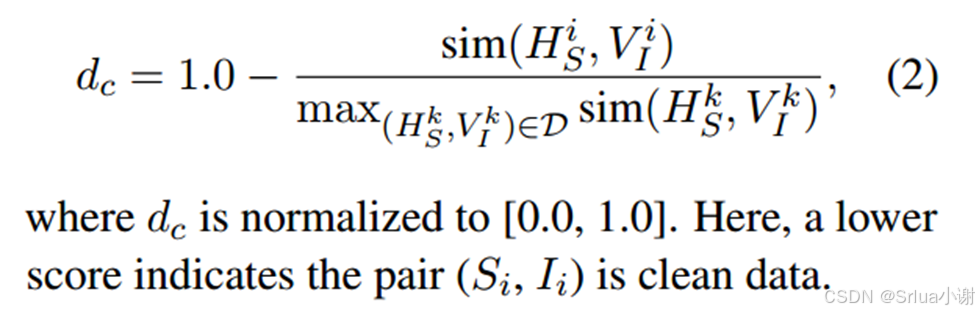相似度越低表明文本和图像越不匹配,说明这组数据越有可能是噪声