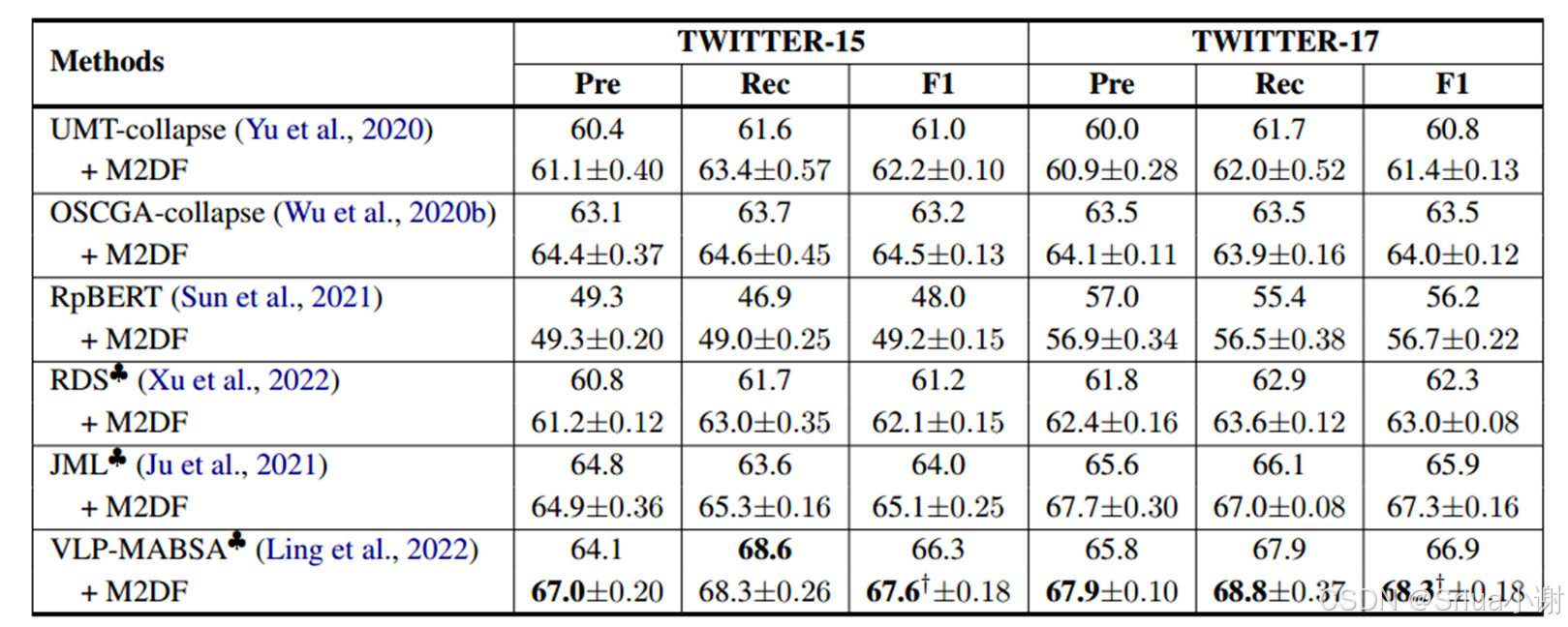 M2DF框架通过调整训练数据的顺序来实现去噪,而不是通过设置阈值来过滤数据。文章通过广泛的实验结果表明,该框架在MABSA的三个子任务上一致地超越了现有的最先进工作。作者还提供了相关代码和数据集的链接。