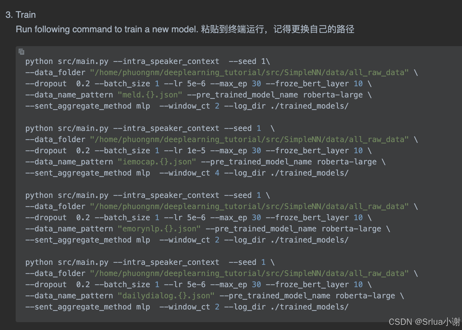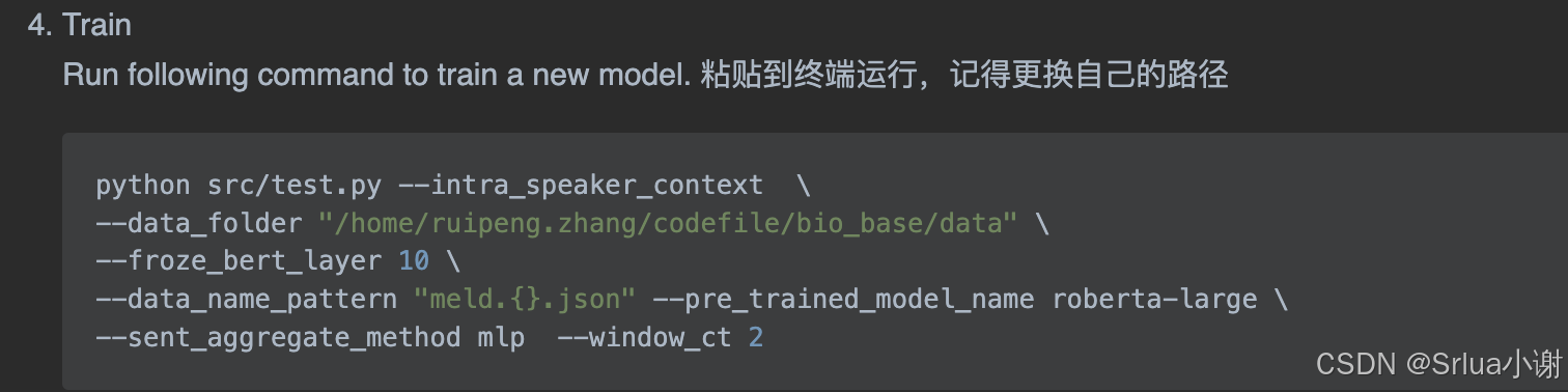 3.关于训练 将readme中训练相关的bash代码粘贴到终端处即可: