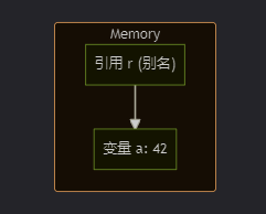 int &r = a; // 引用r绑定到变量a