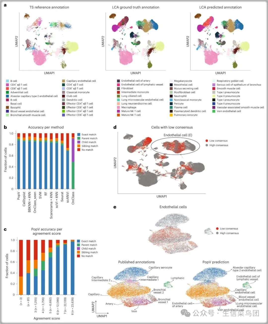 Fig. 2: PopV prediction on LCA and TS lung as reference is accurate and interpretable.