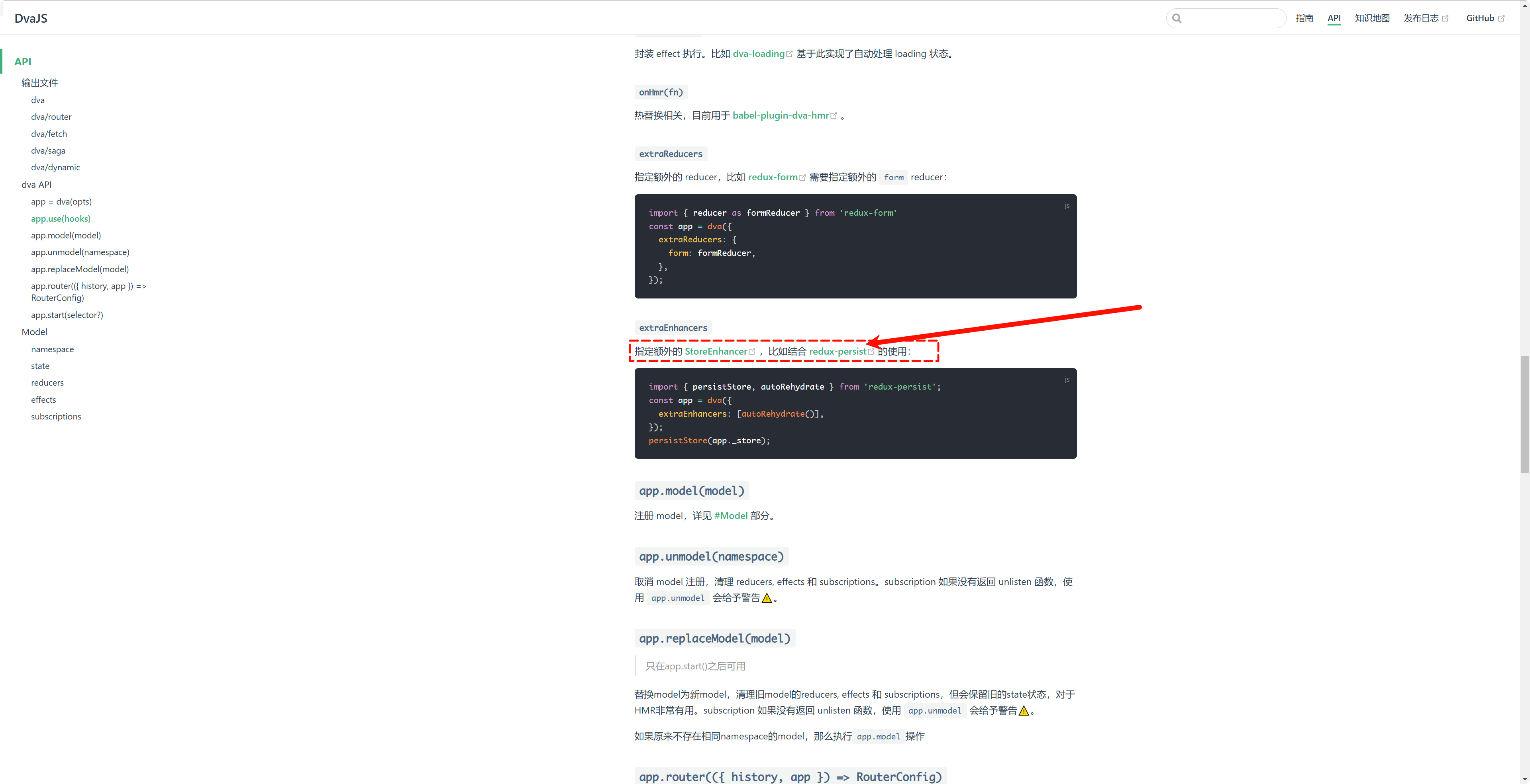 extraEnhancers,常用的是什么,就是 dva,dva 是什么,它就是用来简化 redux,就是用来管理数据的,这个才是 dva 的核心,dva 的核心是什么?核心就是 model,它的核心就是把我们保存的数据,把我们的 reducer,把我们的同步操作,把我们的异步操作,都放到一个地方来进行管理,它的核心就是我们可以给每一个组件都创建一个 model,方便我们去管理数据这个才是它的核心!!!