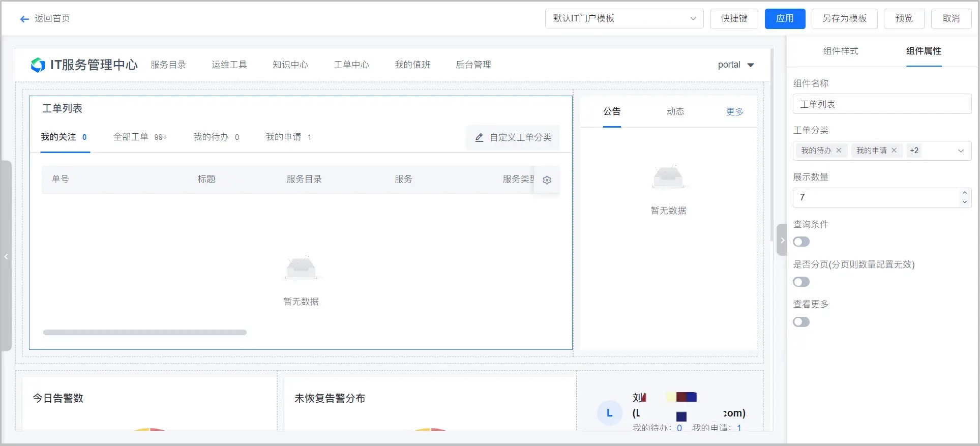 ITSM面向的用户广泛,不仅有运维工程师,还有终端普通用户、运维领导等。不同角色关注的重心不一样,为了提供更好的体验,面向用户的视图可能是千人千面的,基于视图引擎,可以定义不同的视图内容、视图排版、视图样式等,以满足交互和视觉层面的个性化诉求。
