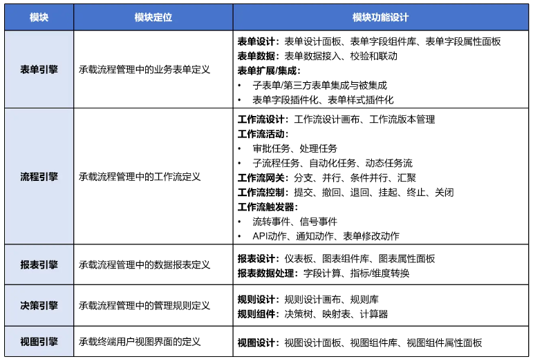 要通过低代码完整地实现一个管理类应用的闭环构建,通常需要五大引擎能力进行配合。
