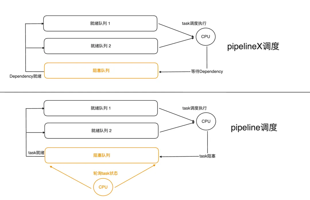 老张神秘一笑:"这就是PipelineX的高明之处。它通过Dependency机制管理任务间的依赖关系。就像项目管理里的甘特图,清晰定义了任务的前置条件。一旦条件满足,相关Task自动进入就绪队列。"