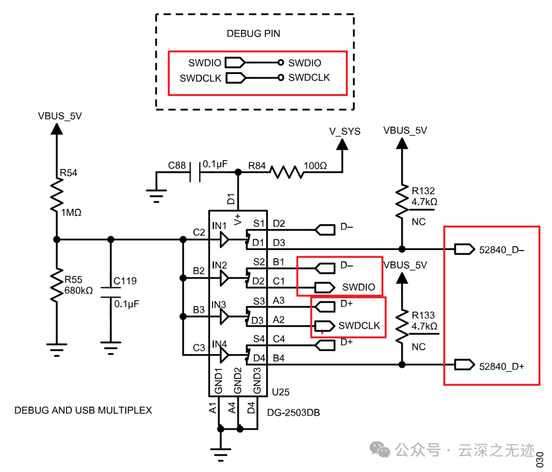 这里是可以供电,以及直接和USB连接在了一起,啊?SWD和USB在一起?