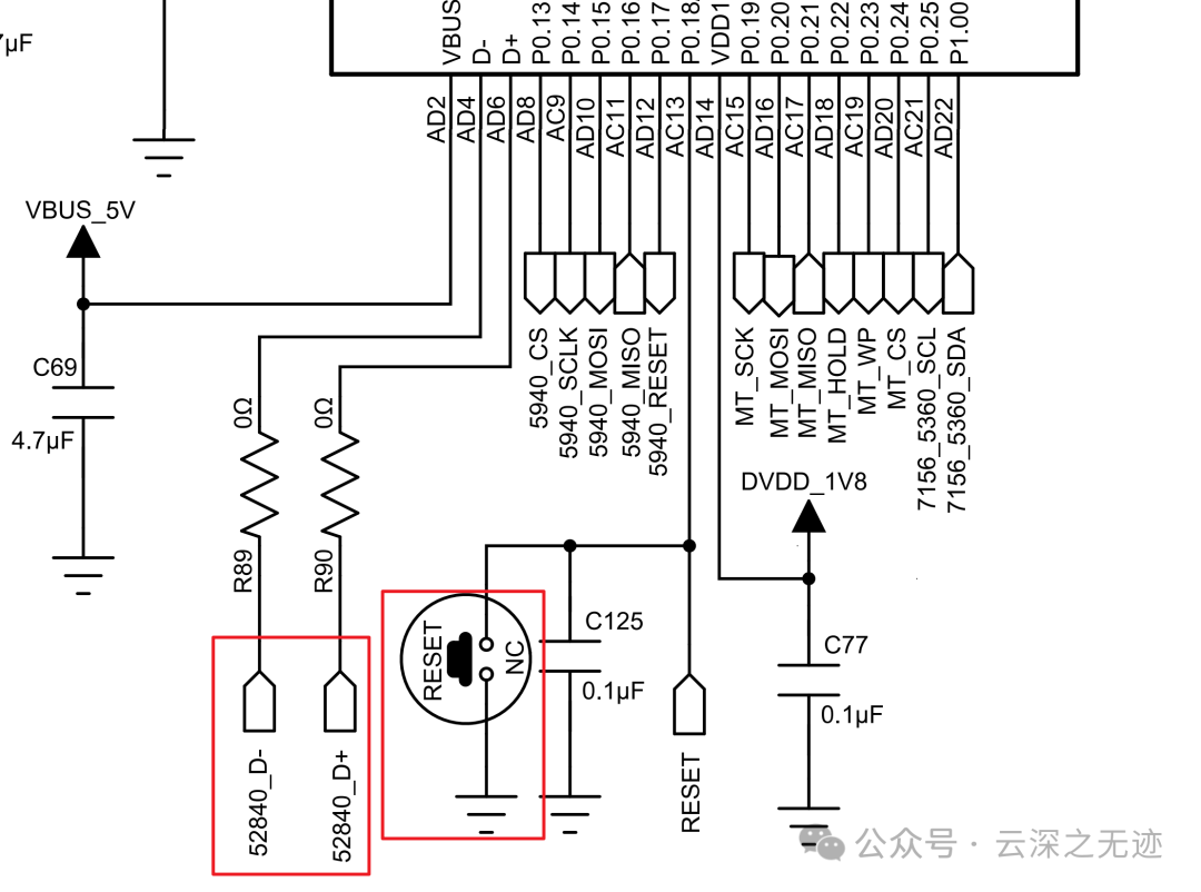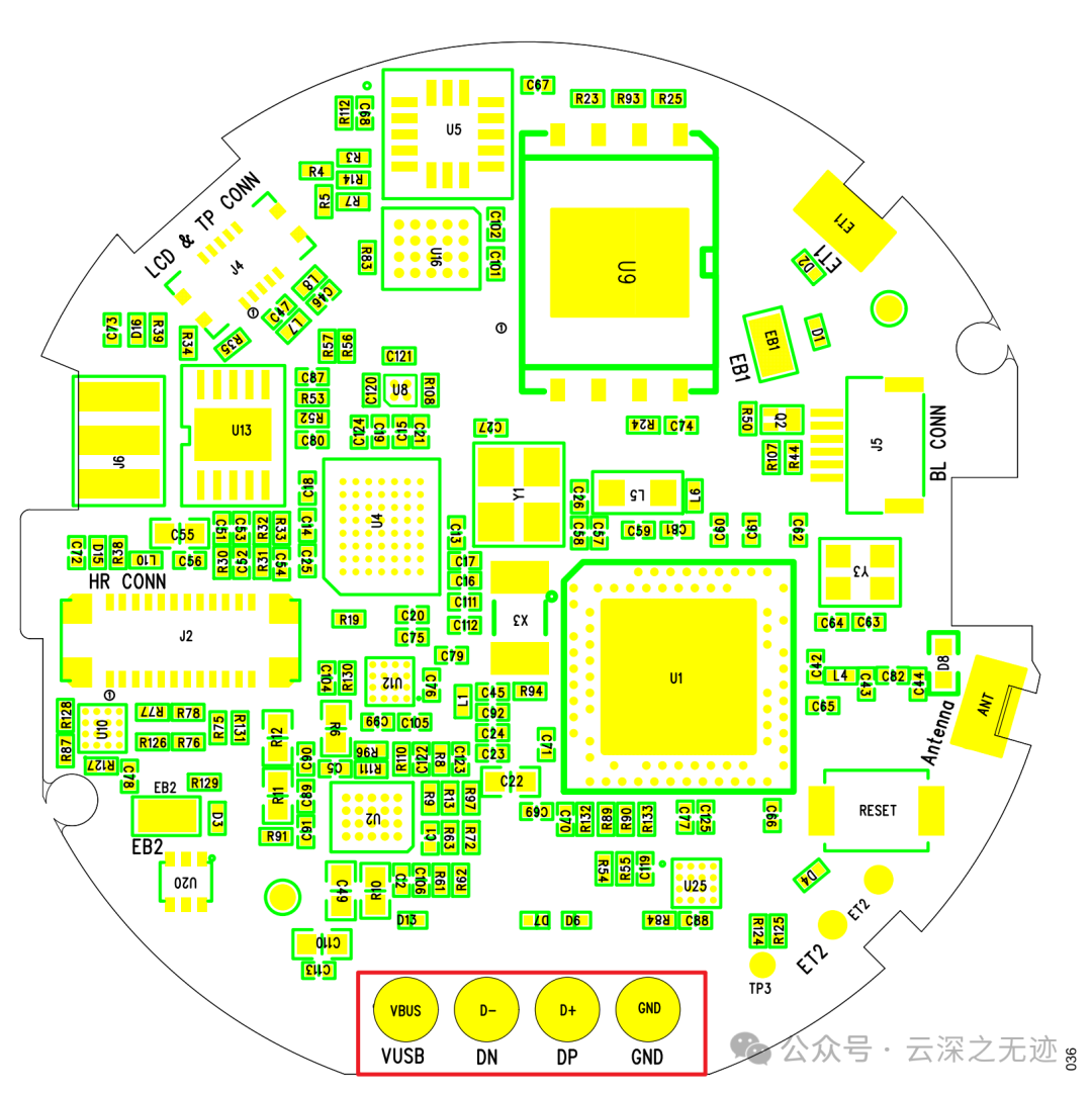 可以看见USB直接0Ω甩出来,还有重启按键,看了看基本上引脚都满了
