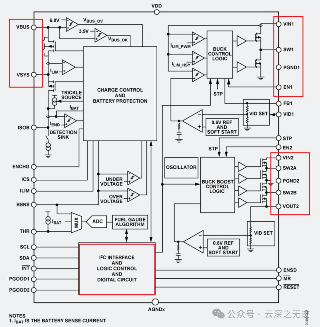 说人话,一个IIC控制的充电芯片,可以通过两个DCDC电源。