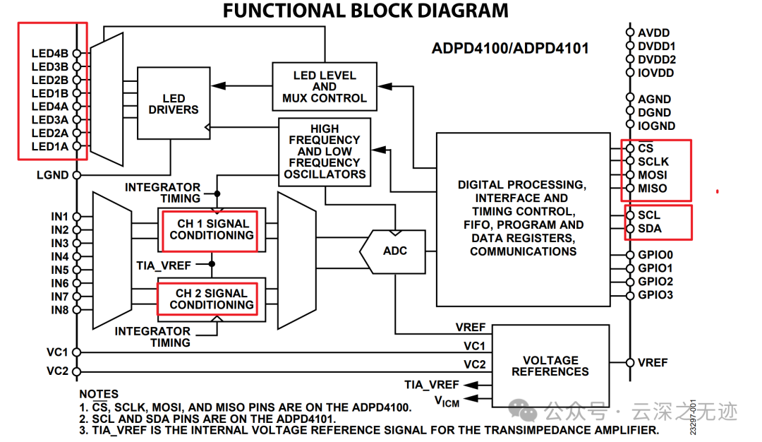 就是这样的一个光学测量前端,一组LED和2组测量,后面比较怪的是出现了SPI+IIC。