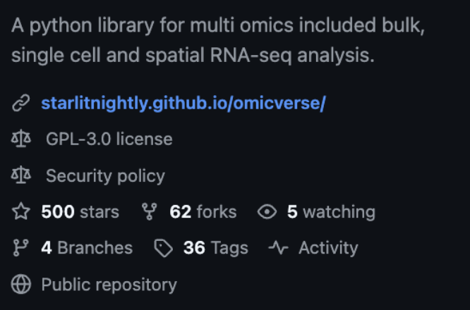 2024年12月24日,平安夜,OmicVerse在Github上的🌟刚好500个了!对比传统的scanpy的2k个🌟,我们成功实现了国人在这方面0的突破。OmicVerse可以说是应用层的一个统一接口。