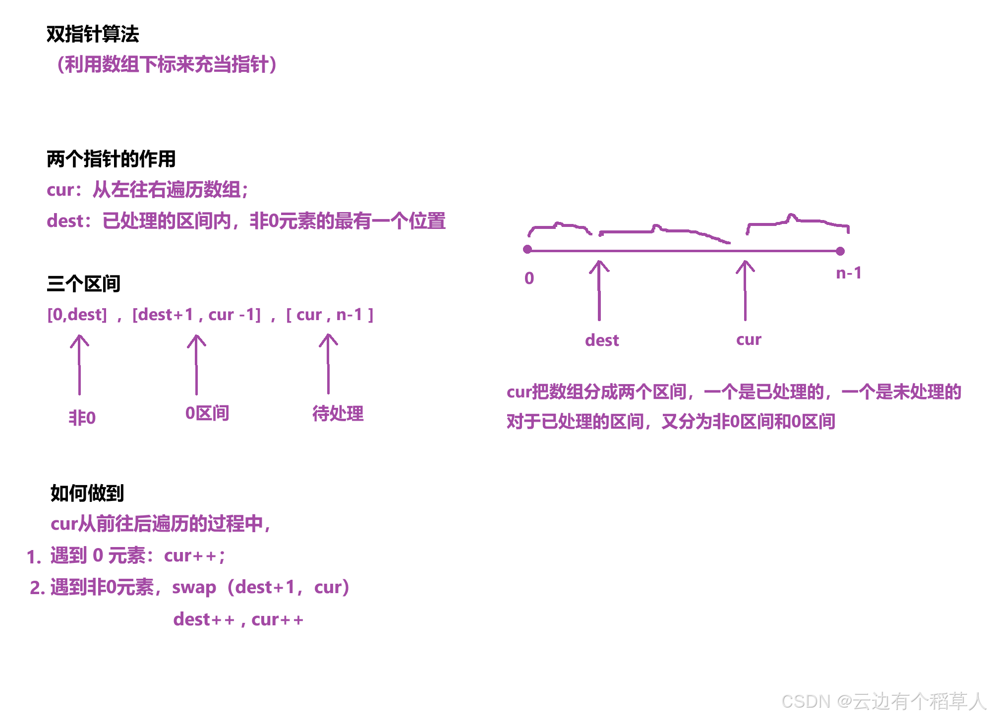 在某种规则下,把数组划分为不同的区间,就可以用双指针算法。