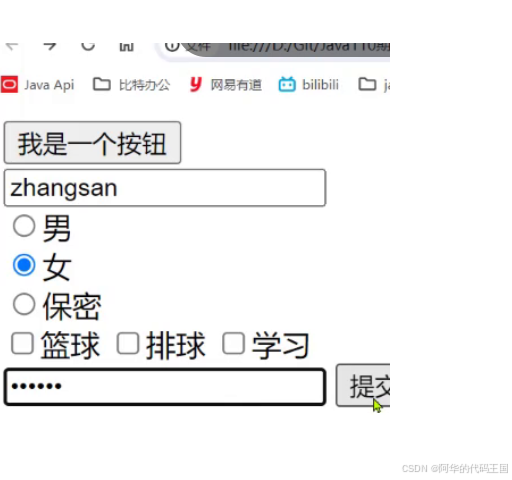 name中的属性一致才可以多选一(这里用gender<性别>是自定义的,也可以改为sex)