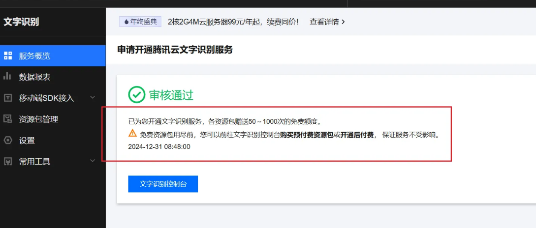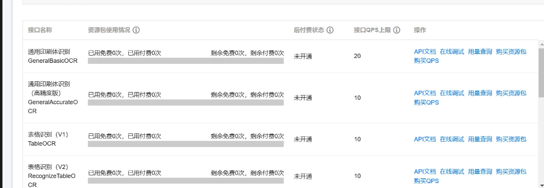 我们进入之后点击开通服务即可体验OCR的具体应用