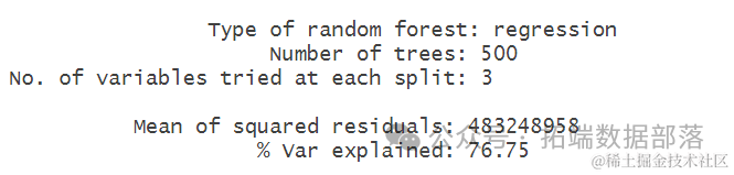 从随机森林模型的结果来看, 一共生成了五百个随机树,房屋价格的方差被解释了76.75%