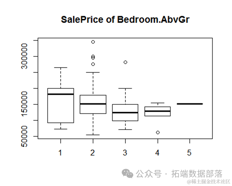 正如我们从不同变量之间的箱线图和上面的房屋销售价格中看到的,高销售价格的房屋有更多的卧室、浴室和车库。