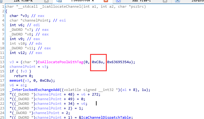 ......而第二次明显是由我们触发的,termdd!IcaDeviceControl到termdd!IcaBindVirtualChannels