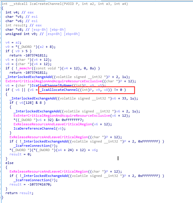 现在来看,感觉自己当时是比较蠢了,既然只是针对MS_T120这个名字的Channel的_IcaBindChannel的第3个参数设置为31,而其他Channel没有写死,那么极大概率不是31这个参数可控不可控的问题了