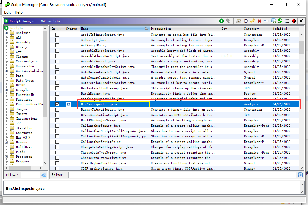 之后点击Window -> Script Manager,找到BinAbsInspector.java