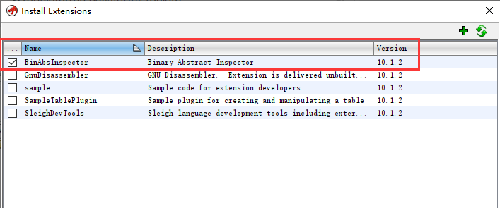 之后点击+号,选择BinAbsInspector解压后的目录或者直接选择BinAbsInspector的zip压缩包都可以,之后就看到BinAbsInspector