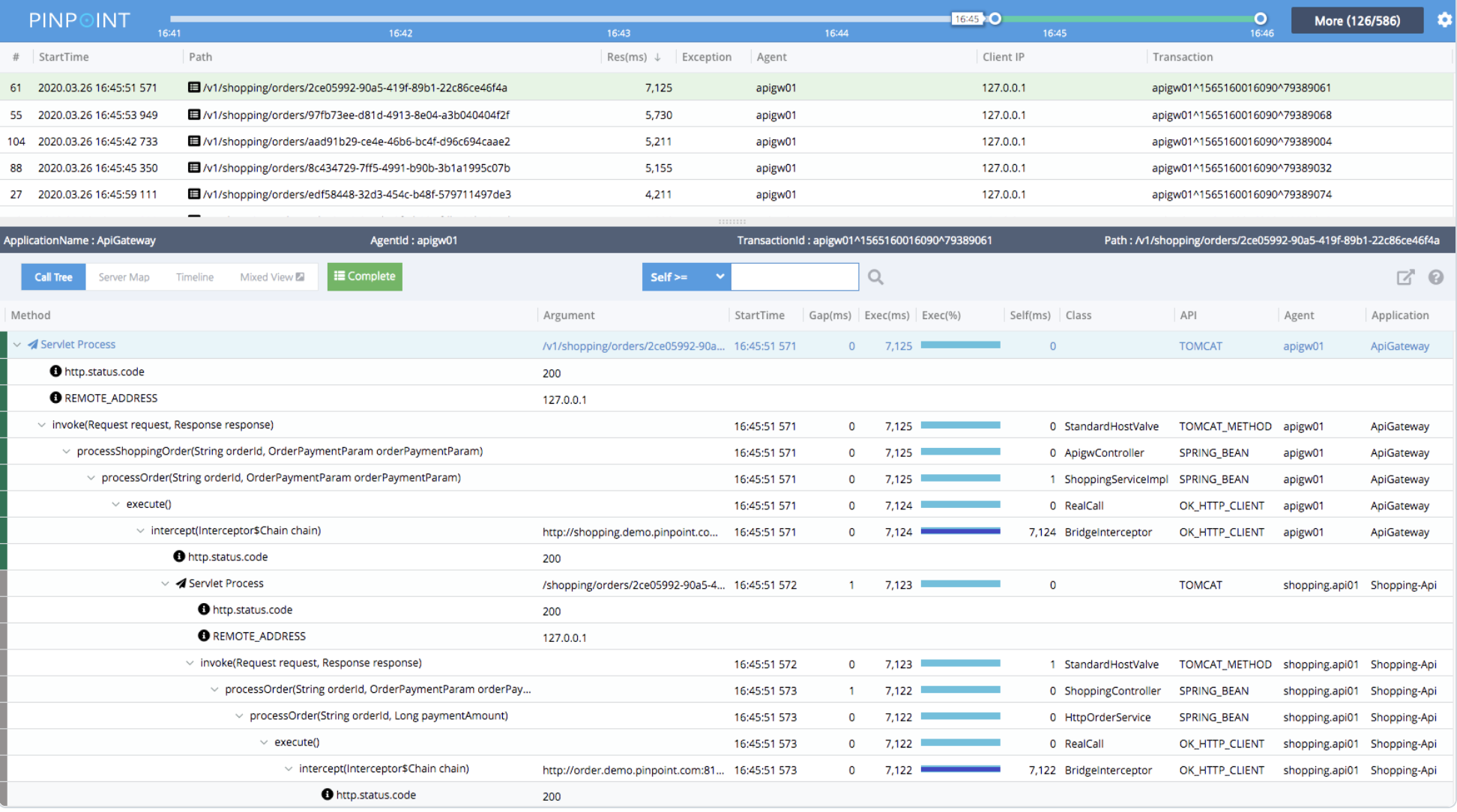 下图是pinpoint的调用栈示例:
