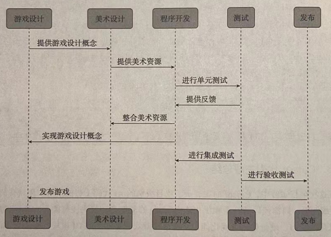 通过这次实践,我认识到 AI 工具链已经足以打破角色边界。传统 2D 游戏的研发流程通常可以分为图 10-13 所示的几个阶段。