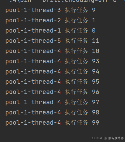 System.out.println(Thread.currentThread().getName()+" 执行任务 "+takeI);