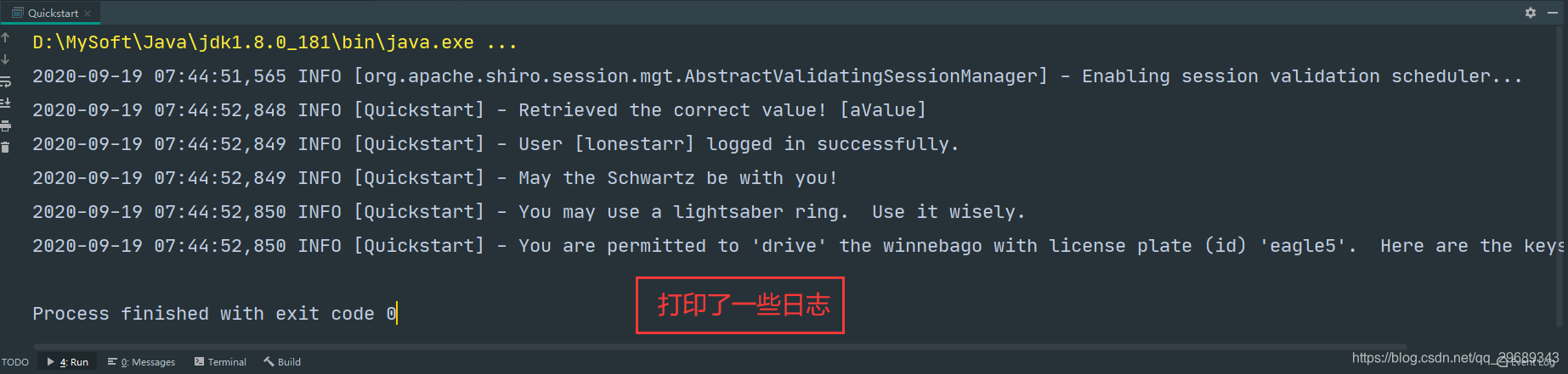// Now that a simple Shiro environment is set up, let's see what you can do: