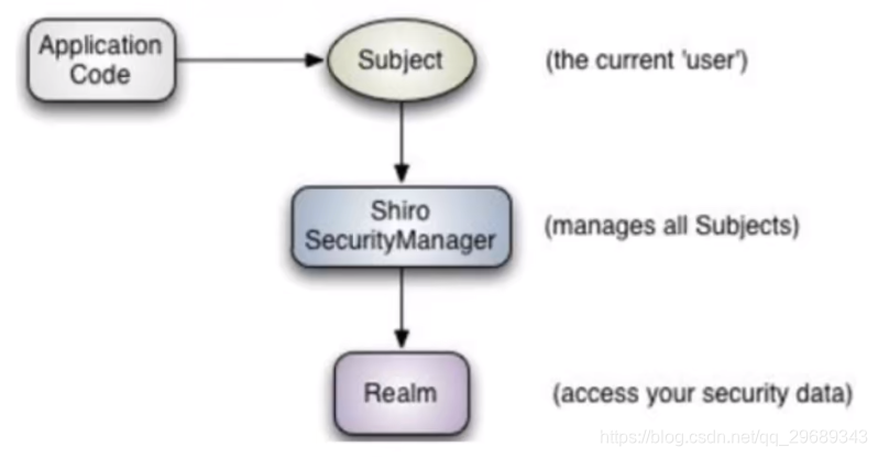 应用程序代码,代表的一个shiro的启动入口,用shiro的api来启动,可以理解成把用户的数据用shiro的api传递个shiro,由shiro来处理用户数据;