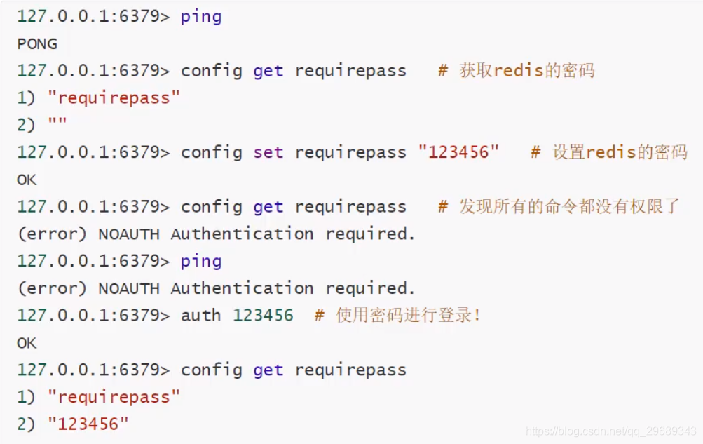 设置密码之后,直接ping就不会pong了,需要执行“auth 密码”来进行验证;