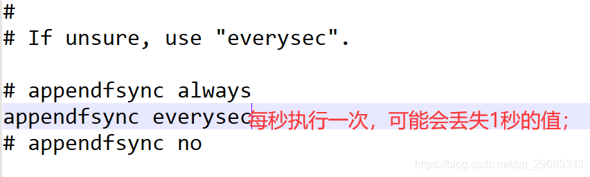 appendfsync everysec 每秒同步一次,可能会丢失1s的数据