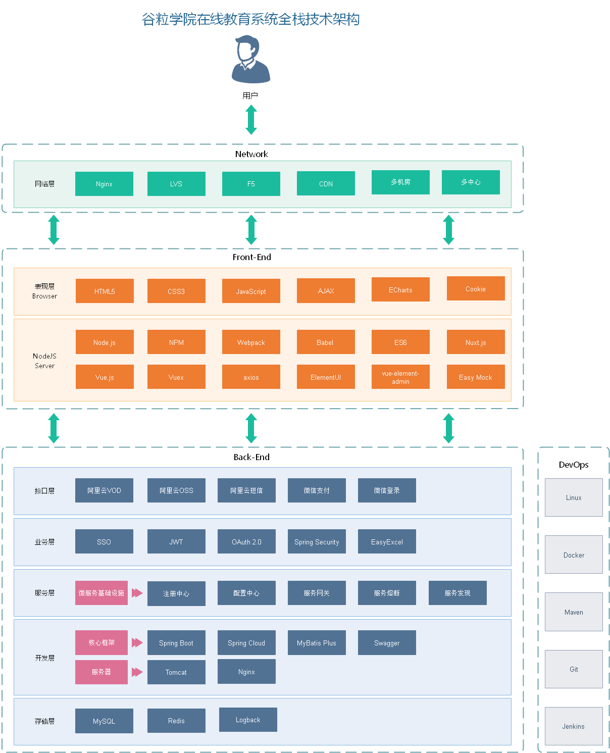 谷粒学院,是一个B2C模式的职业技能在线教育系统,分为前台用户系统和后台运营平台;