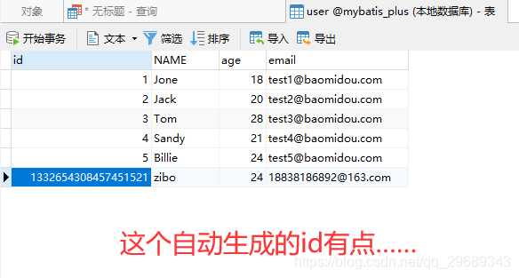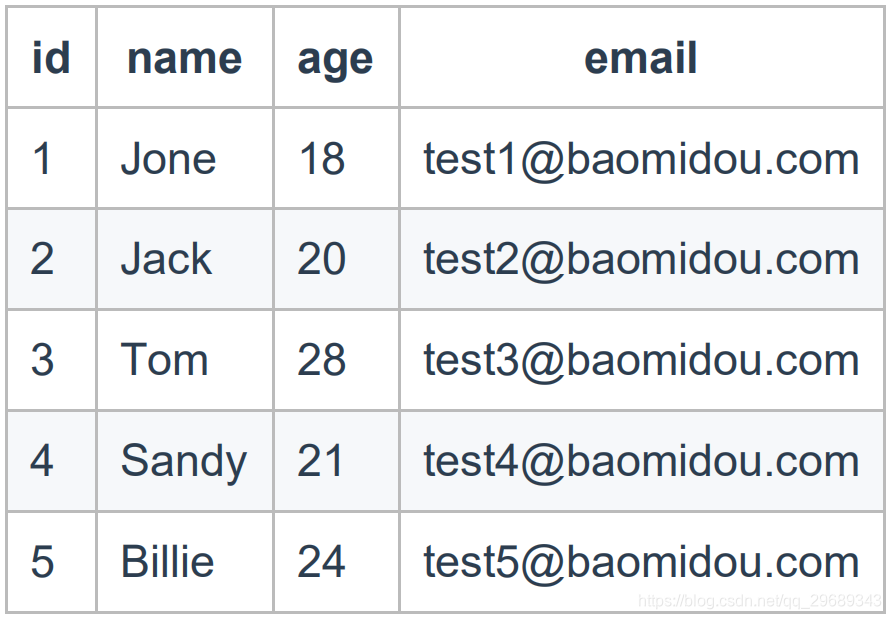 ( 4, 'Sandy', 21, 'test4@baomidou.com' ),