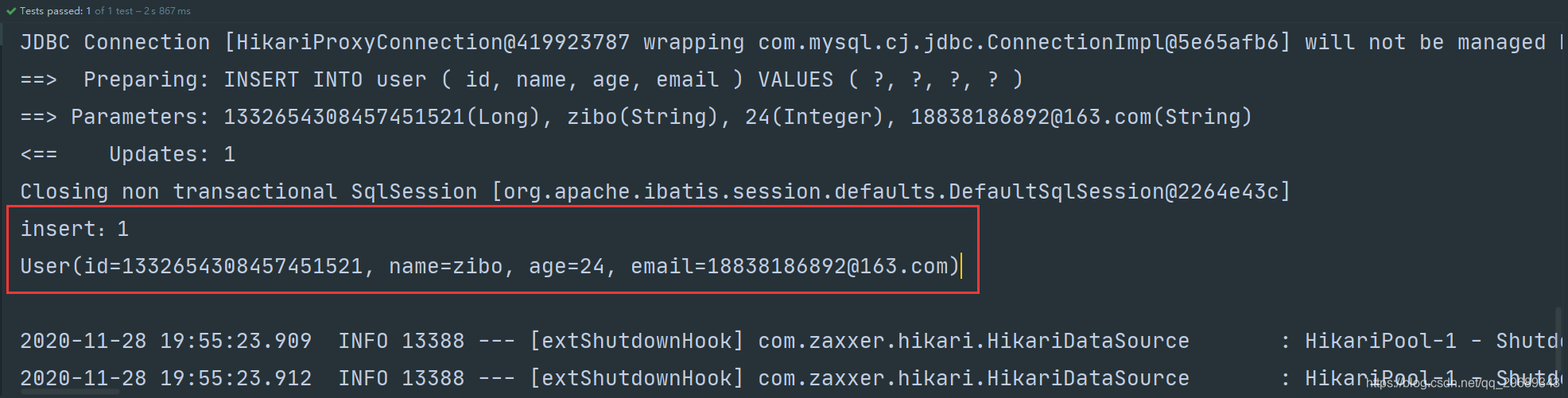 User(id=2, name=Jack, age=20, email=test2@baomidou.com)