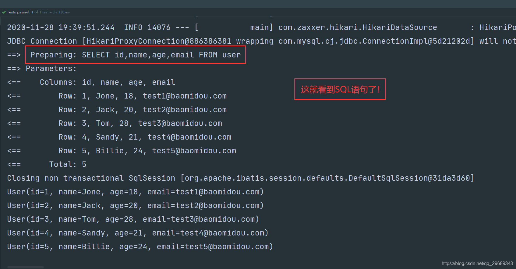 User(id=3, name=Tom, age=28, email=test3@baomidou.com)