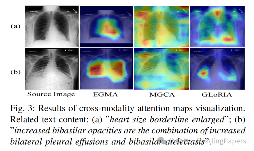 随着眼动追踪和语音识别等数据收集技术的发展,现在可以收集和处理放射科医生在诊断过程中的多模态交互数据。在这项工作中,作者利用MIMIC-EYE数据集作为训练集,该数据集包含从MIMIC数据集中提取的3689张图像。每个样本都附有相应的眼动追踪数据和转录文本。这些眼动追踪数据由PhysioNet上公开可用的EYE GAZE和REFLACX数据集提供。由于每种模态都是同步的,音频数据与眼动数据在时间上对齐。通过根据每个单词发音前后的时间分割音频,作者可以将转录与音频对齐,从而将句子级别的文本与眼动数据对齐。随后,作者根据眼动数据和图像生成注意力热图,表示放射科医生关注的图像区域。通过上述数据处理步骤,作者实现了句子级别文本和图像区域之间的精确对齐。眼动和音频转录的详细处理方法可在补充材料中找到。