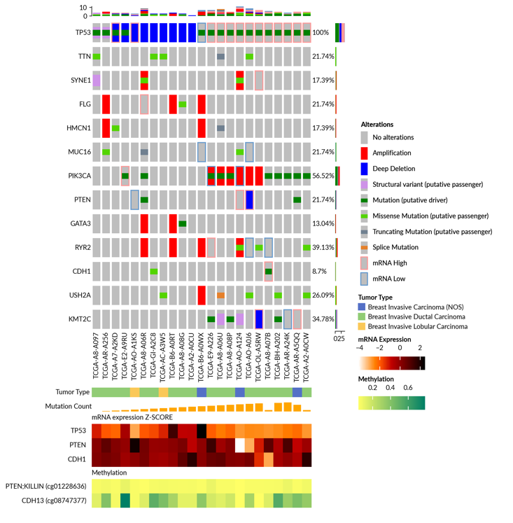 突变-表达联合图(oncoprint):重现cBioPortal可视化。