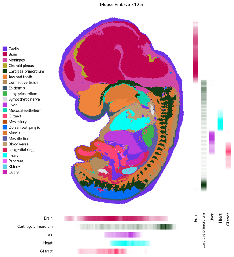 例如在鼠胚胎空间组学数据中,我们通过在细胞图的两侧添加密度图,提升了细胞类型定位的清晰度,同时改进了对色盲用户的支持。
