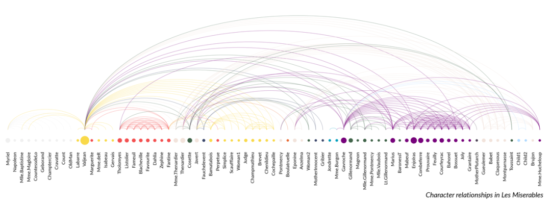 社会网络图:展示角色关系网络(如《悲惨世界》)。