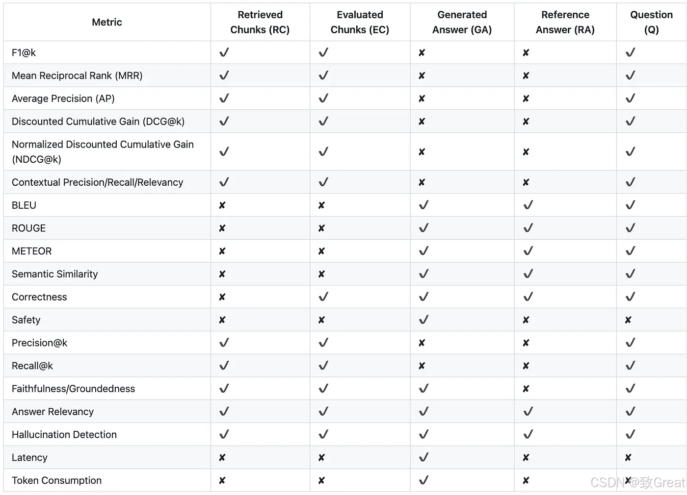 - 问题(Q):这是用户实际提出的问题,评估的起点。