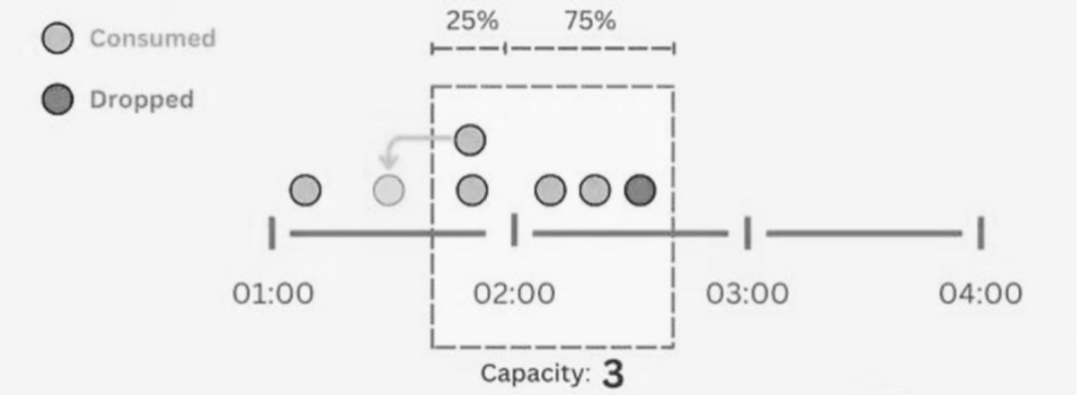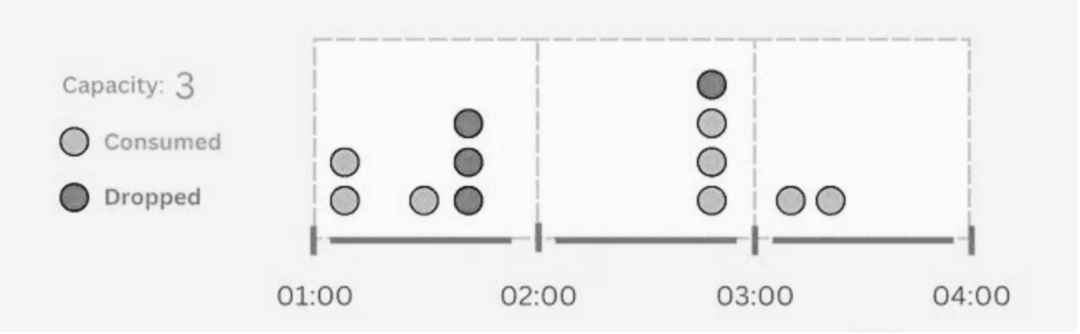 令牌桶和漏桶允许在处理请求速率方面有一定的灵活性,而固定窗口计数器是更严格的意义上限制。如果请求快速地达到了限制,则在下一个窗口之前不会处理更多请求,而不管实际的容量或需求如何。考虑一个速率限制为每小时100个请求的 API。在固定窗口计数器下,如果在最初30分钟内收到100个请求,则不论服务器的实际容量或需求如何,在该小时的剩余30分钟内将不会处理进一步的请求。