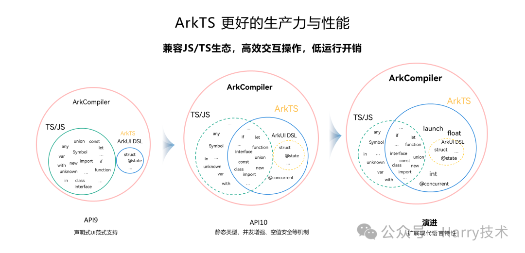 ArkTS支持与JS/TS高效互操作,兼容JS/TS生态。
