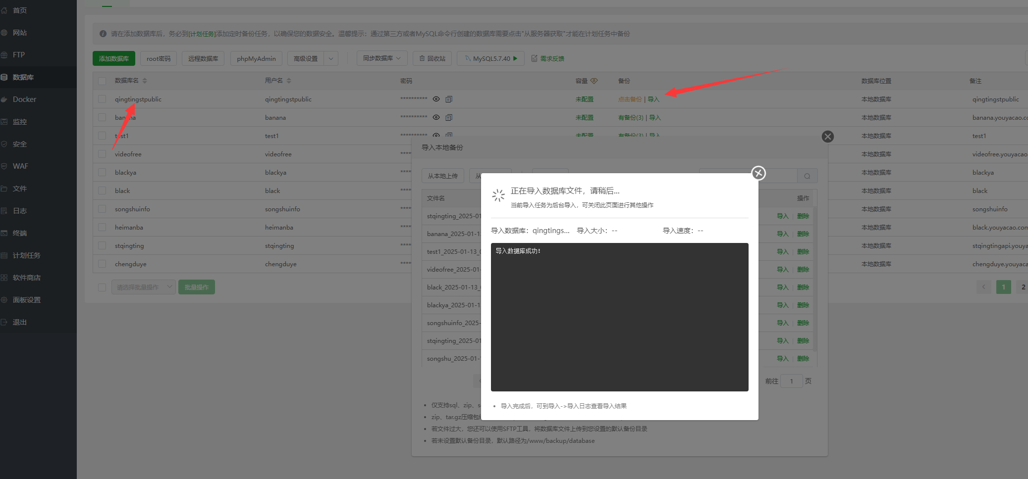 然后将数据库导入到qingtingstpublic(这是刚建立的公开数据库)