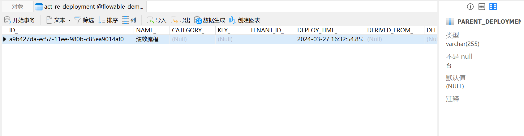 其次是act_re_deployment表,它记载了这次的部署行为;