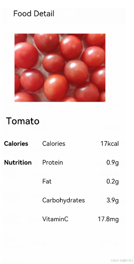 已经完成了FoodCategoryList页面和FoodDetail页面的跳转和回退,但是点击不同的FoodListItem/FoodGridItem,跳转的FoodDetail页面都是西红柿Tomato的详细介绍,这是因为没有构建起两个页面的数据传递,需要用到携带参数(parameter)路由。